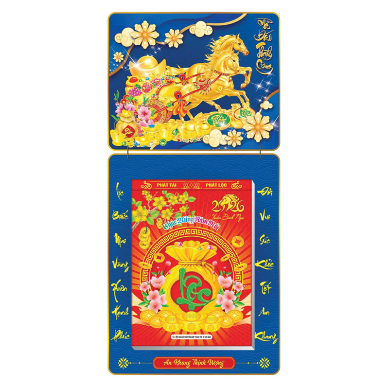 Lịch Bloc 2026 (25x35 cm) Cực Đại - Mã Đáo Thành Công 01 Trọn Bộ Đầu Treo Laminate - In Quảng Cáo Logo Theo Yêu Cầu