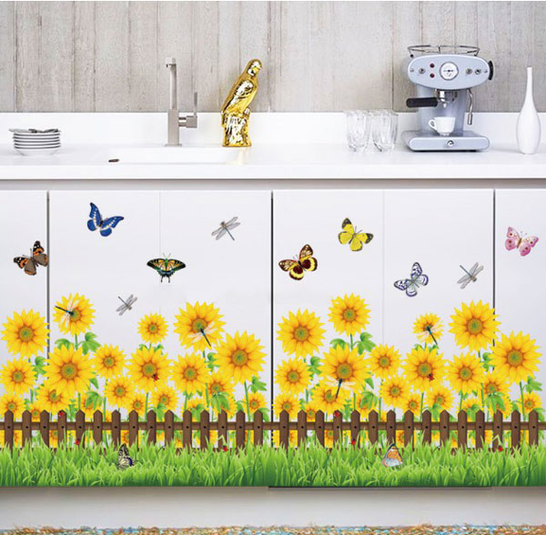 Decal Trang Trí Chân Tường Hàng Rào Hoa Hướng Dương