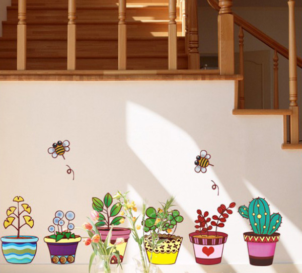 Decal Trang Trí Những Chậu Hoa Hoạt Hình