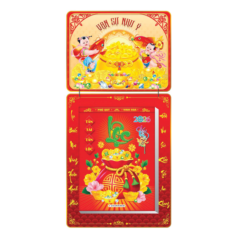 Lịch Bloc 2026 (30x40 cm) Siêu Cực Đại - Vạn Sự Như Ý 02 Trọn Bộ Đầu Treo Laminate là món quà không thể thiếu trong dịp năm mới, vừa mang lại may mắn vừa giúp bạn trang trí cho không gian tràn ngập sắc Xuân trong năm mới 2026 này.