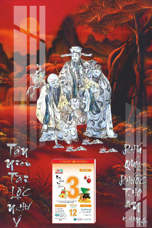 Lịch Gỗ Treo Tường Laminate Tráng Gương 2026 (40x60 cm) - Phúc Lộc Thọ (TV39) - In Quảng Cáo Logo Theo Yêu Cầu