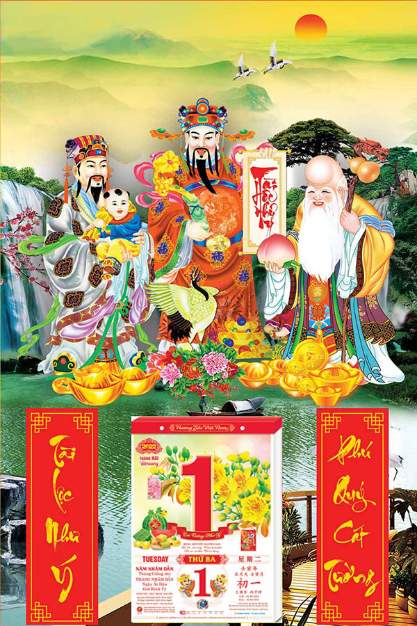 Lịch Gỗ Treo Tường Laminate Tráng Gương 2025 (40x60 cm) - Phúc Lộc Thọ (TV08) - In Quảng Cáo Logo Theo Yêu Cầu