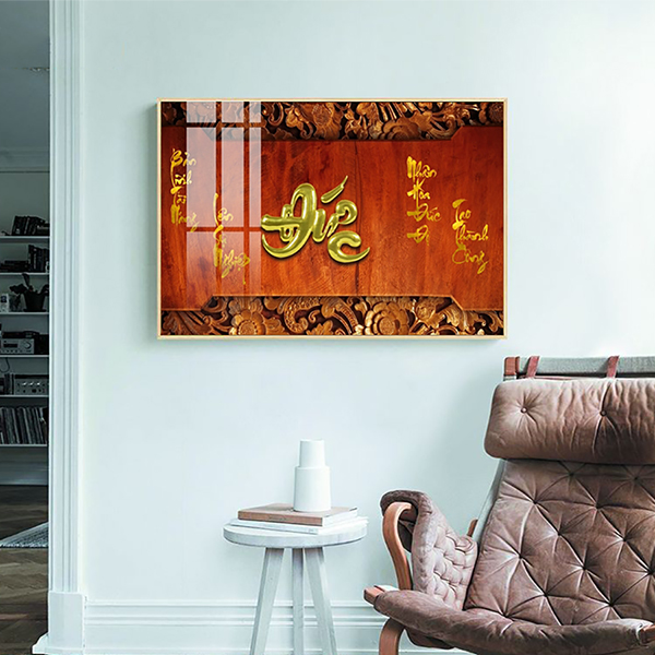 Tranh Treo Tường Thư Pháp Chữ Đức là dòng tranh nghệ thuật mang hồn cốt dân tộc thường mang tính giáo dục con người về đạo đức và nhân sinh quan trong cuộc sống hàng ngày và được viết rất nắn nót, cầu kỳ. Bên cạnh những hình ảnh và nội dung mang nét đẹp truyền thống, những bức tranh thư pháp tráng gương còn mang đến cho gia chủ một cảm giác thư thái và yên bình trong tâm hồn.